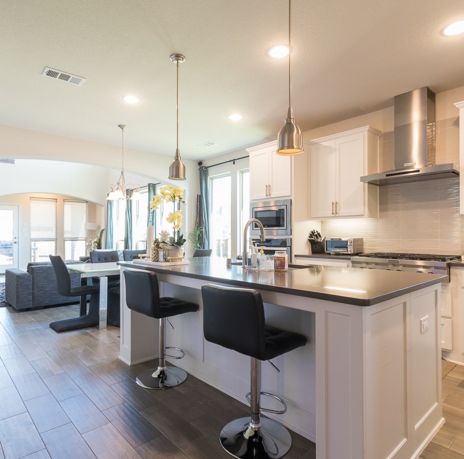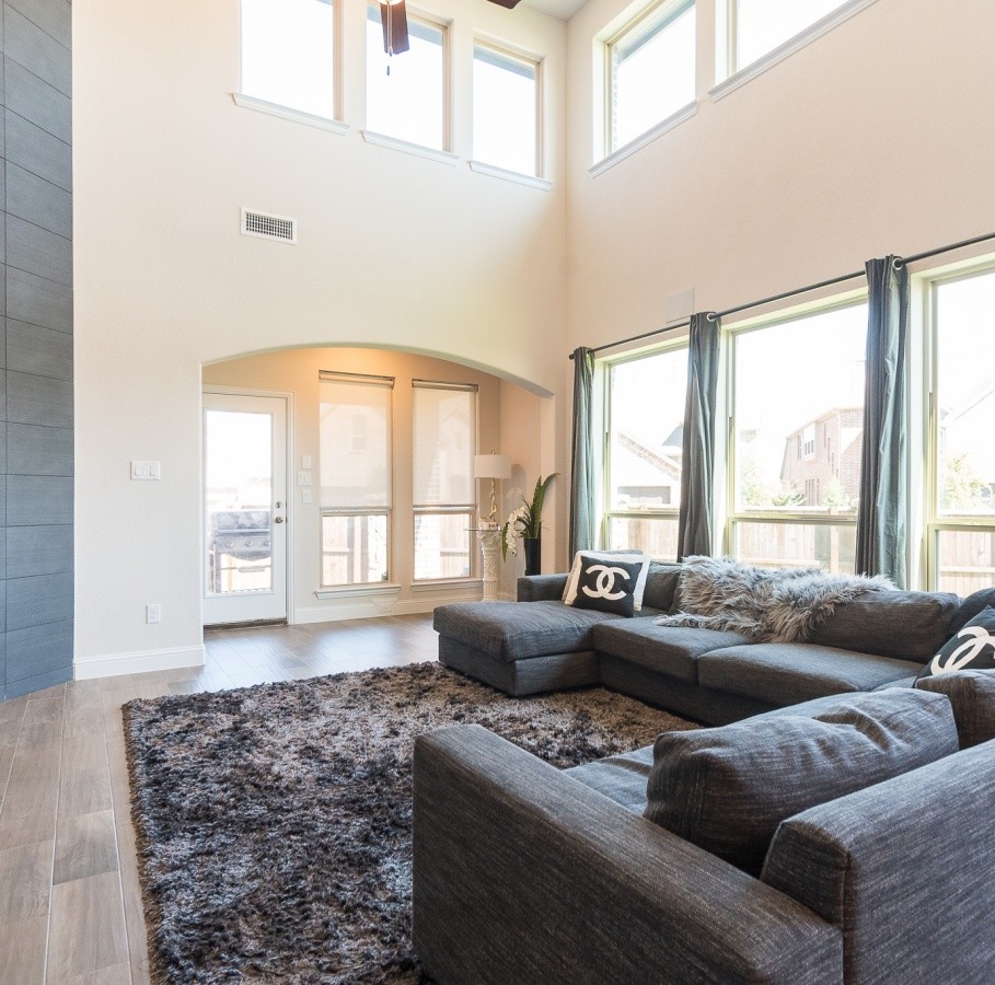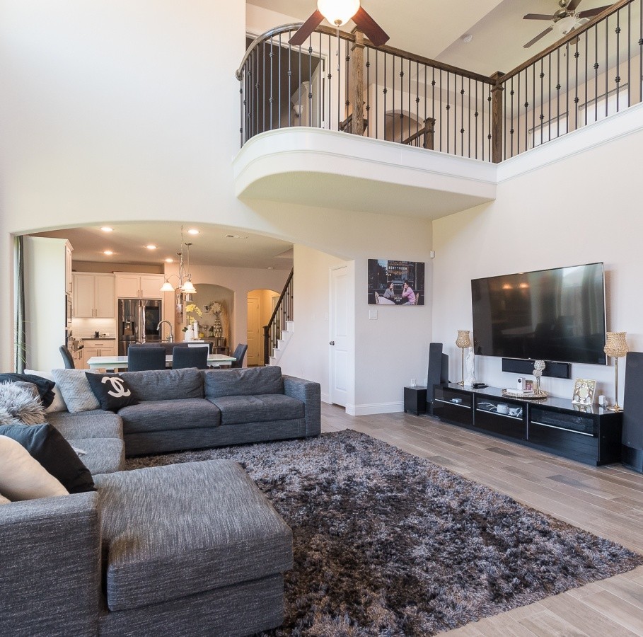 The property boasts a modern, bright, and open kitchen made for entertaining. The kitchen is chef-inspired and features upgraded grey quartz countertops that contrast well with white cabinets and grey wood-like tile throughout. The house has a two-story living room, characterized by soaring ceilings and an upgraded ceiling-to-floor tile fireplace. Upstairs, one can find a media room, game room, and two bedrooms in addition to a junior suite. One will also have access to plenty of parking and storage space, with an oversized 3-car garage and a vast Texas-size yard large enough to accommodate a swimming pool. The house is very conveniently situated and offers easy access to the community pool, clubhouse, and playground. It is also very close to a variety of shopping centers, restaurants, theaters, grocery stores, and a health club.
