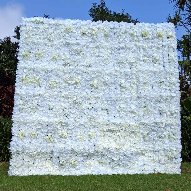 Options available for customers to choose from include the White Rose Flower Wall, which is silk white in appearance, 2.3m x 2.3m in measurement and perfect for weddings, hen parties, baby showers and more. Other products include Green Hedge Backdrop, designed for engagements and parties, as well as the White/Pink Rose flower wall, designed for weddings, hen parties, baby showers and more.