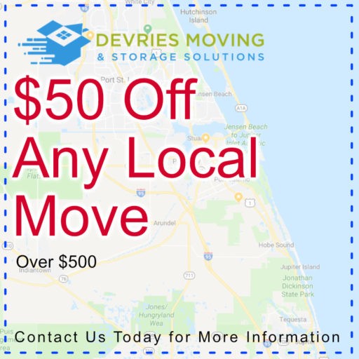 Devries Moving & Storage just announced a summer time discount on their local moving services in Jupiter, FL. This promotion is for both new and existing customers and lowers the price of their moving services by $50. This promotion expires September 30th and can only be used on moves that amount to $500 or more.